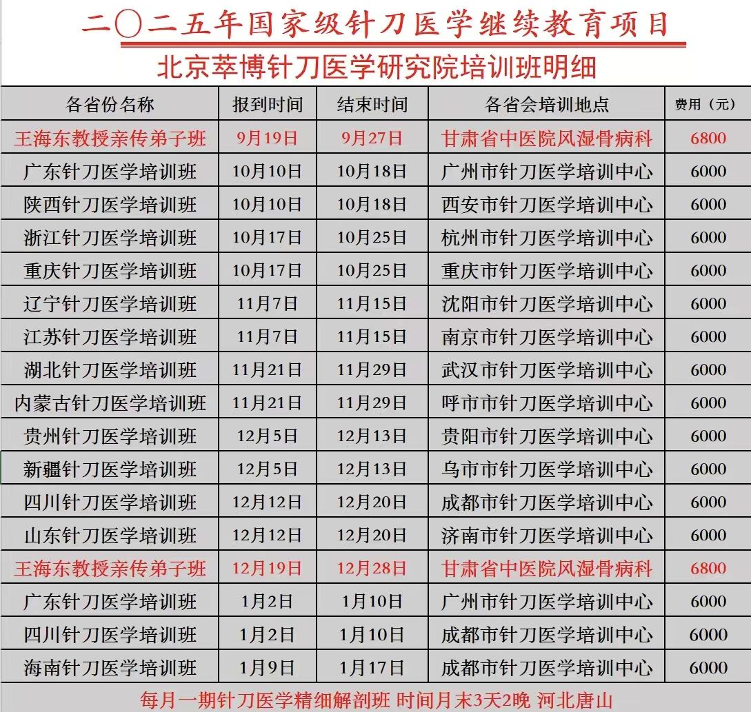 为响应国家中医药管理局关于推广及普及中医专业实用技能的通知,为了规范针刀医学临床诊疗技术,普及推广针刀医学治疗实用技能,同时交流各地针刀医学临床诊疗先进经验。世界针刀医学研究会学术部主办,北京萃博针刀医学研究院承办“全国第三十二届针刀医学新进展学习班”( 针刀医学临床操作提高培训班,项目编号BT20241621028),将定于 2025 年10月 17 日在浙江省杭州市举办,届时将邀请全国知名针刀医学专家授课,欢迎贵单位组织相关人员参加。