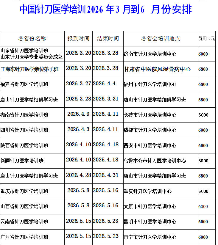 2026年6月5日哈尔滨第三十届针刀医学学习班课程表